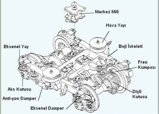Anti-yaw Damper: Araç kurptan geçerken ray-teker arasında meydana gelen yanal kuvvetleri sönümleyen elemandır.