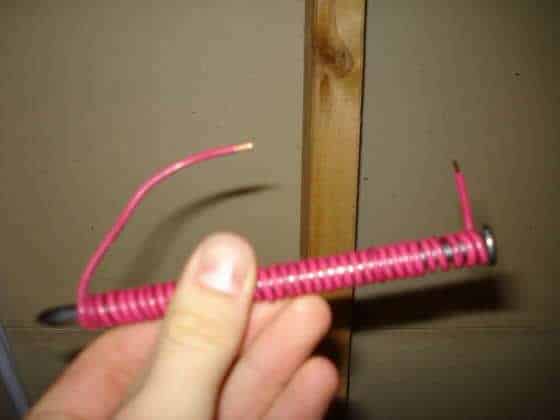 Gerekli malzemeler: 2 adet 10cm beton çivisi, dışı yalıtkanlı telefon teli ya da izoleli bakır bobin teli, 9 Volt pil.