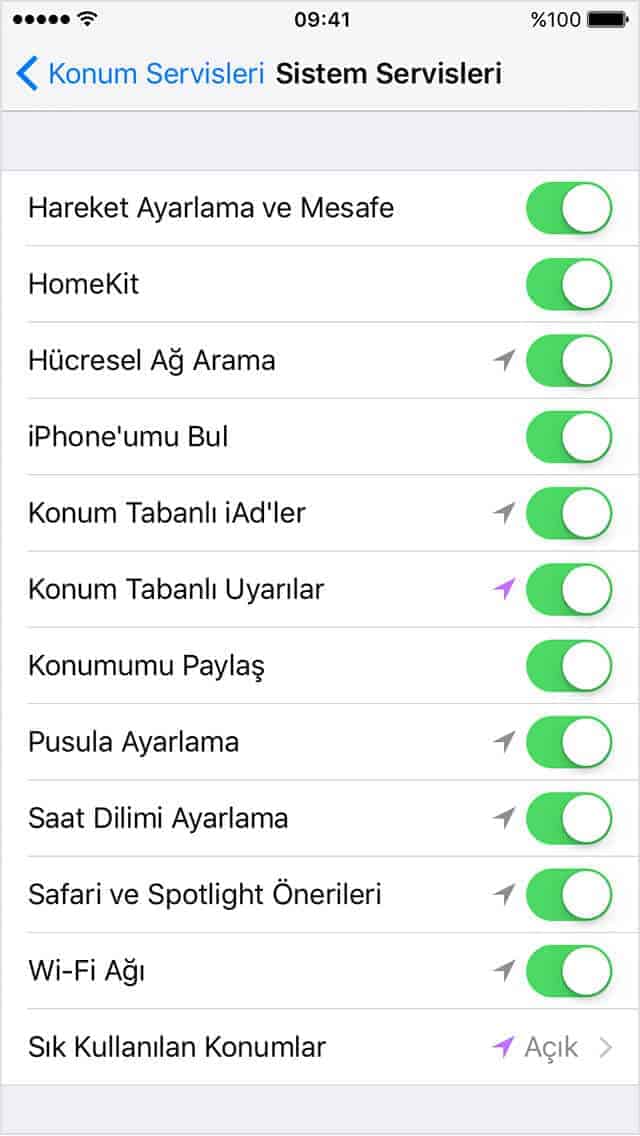 - Ayarlar>Gizlilik>Konum Servisleri sekmesinden hangi uygulamanın konumunuzu ne zaman kullanıp kullanamayacağını kendiniz ayarlayın. Çünkü, örneğin bir haber uygulamasının sizin haberiniz olmadan uygulamayı kullanmadığınız zamanda bile konumunuzu kullanıp şarjınızı yemesi isteyeceğiniz bir şey değildir. Ayrıca eğer Konum Servislerini çok sık kullanmayan birisi iseniz de Konum Servislerini kapatıp sadece gerektiği zamanda açmanız tasarruf sağlayacaktır.