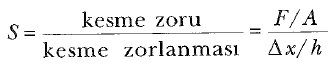 olur. Bazı maddelerin kesme modülleri Tablo 1′ de verilmektedir. Kesme modülünün birimi, birim alan başına kuvvettir.