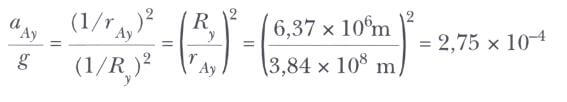 Newton, kendi evrensel çekim yasasını formüle ederken çekim kuvvetinin, uzaklığın karesinin tersiyle orantılı olduğunu telkin eden şu akıl yürütmeyi kullandı. Ay’ın merkezcil ivmesini, Dünyanın yüzeyine yakın bir yerden düşmekte olan hikayesi anlatılan elma gibi bir cismin ivmesiyle karşılaştıralım. Her iki ivmenin sebebinin aynı olduğunu, yani Dünya’nın kütle çekiminden kaynaklandığını kabul edelim. Ters kare yasasından Newton, Ay’ın Dünya’ya doğru olan ivmesinin (merkezcil ivme) 1 /rAy^2 ile orantılı olması gerektiğini buldu, burada rAy Dünya ile Ay’ın merkezleri arasındaki uzaklıktır. Bundan başka, Ry Dünyanın yarıçapı veya Dünya ile elmanın merkezleri arasındaki uzaklık olmak üzere, elmanın dünyaya doğru ivmesi 1 /Ry^2 ile orantılı olarak değişir. rAy = 3,84 х 10^8 m ve Ry = 6,37 x 10^6 m değerlerini kullanarak Ay’ın aAy ivmesinin, elmanın g ivmesine oranını aşağıdaki gibi tahmin etti.