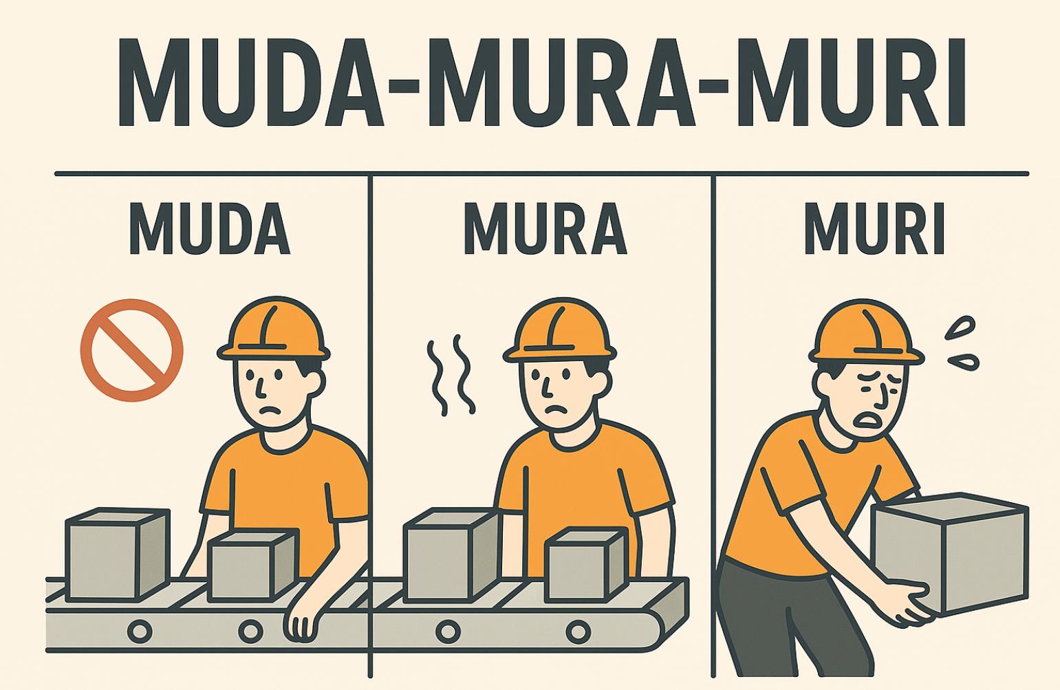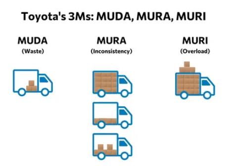 ** Mura, genellikle Muda’nın ve Muri’nin kök nedenlerinden biridir. Düzensizlik aşırı yüklenmeye (muri) ve israfa (muda) yol açar.