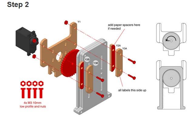 Adım 2: Servo anahtar deliğinin şekli Y1 ile uyumluolması gereklidir. Gösterildiği gibi Z-tablasını eklemek için, dişliyi tamamen saat yönünün tersine çevirin, daha sonra Z-tablasına 1. adımdaki parça oturacak.
