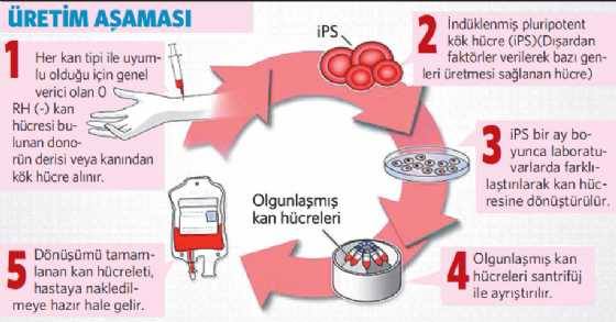 İngiliz Edinburgh Üniversitesi de deri ve kandan alınan kök hücreleri kullanılarak yapay kan üretmeyi başarmış, gerçek ve yapay arasında yüzde 50 uyum tespit etmiştir. 2016 yılında kan uyuşmazlığı olan 3 hastada denenecek olan yapay kan başarılı olursa özellikle nadir bulunan kan tipi olan 0 RH (-)’ten fazlaca üretileceği ve bu sayede önümüzdeki 20 yıl içerisinde gerçek kanın yerini alabileceği düşünülüyor. İngiliz bilim adamları tarafından geliştirilen yöntem ile bir ünite kanın sadece 200 dolar olacağı ve tek bir embriyodan İngiltere’deki tüm insanlara yetecek ölçüde kan üretilebileceği söyleniyor.